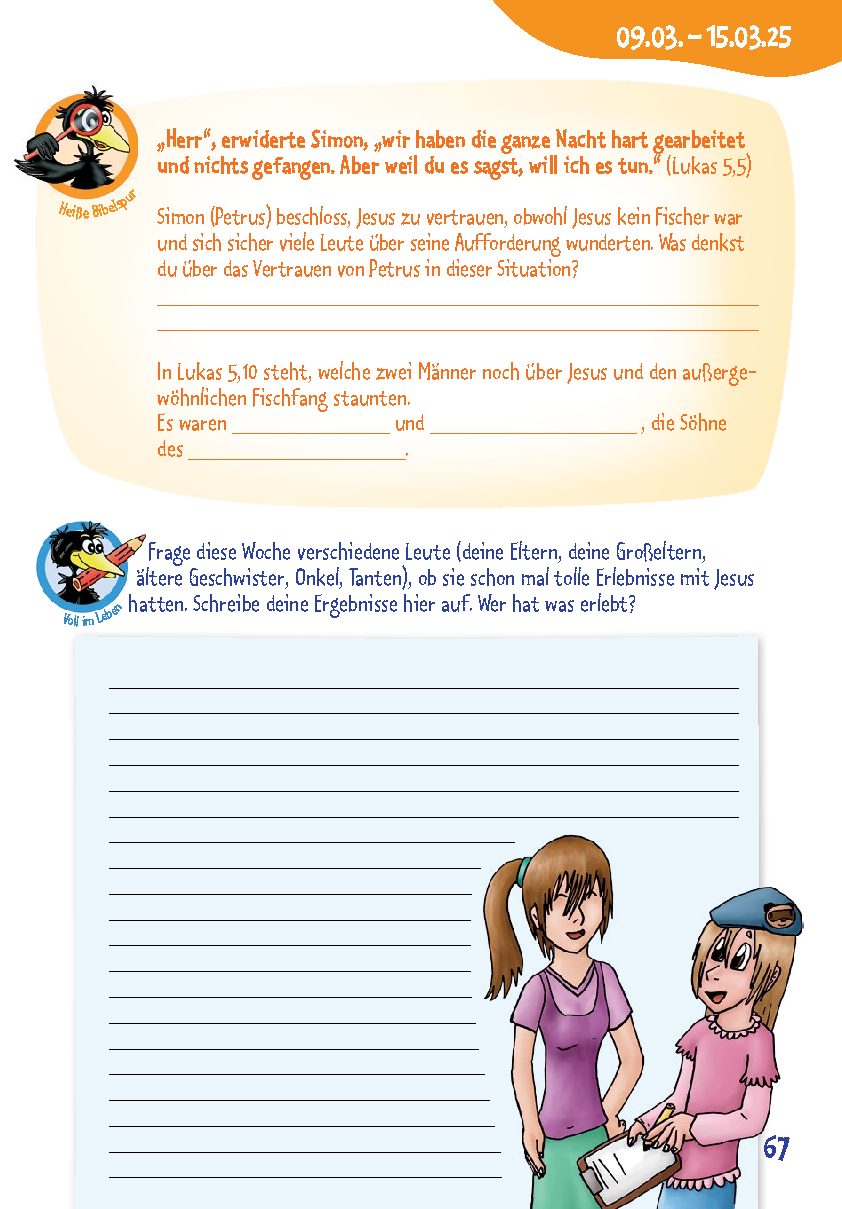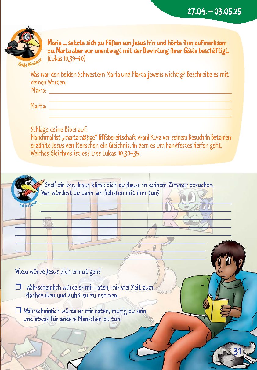 - Dienstag: Bearbeiten der Rubrik „Heiße Bibelspur“.