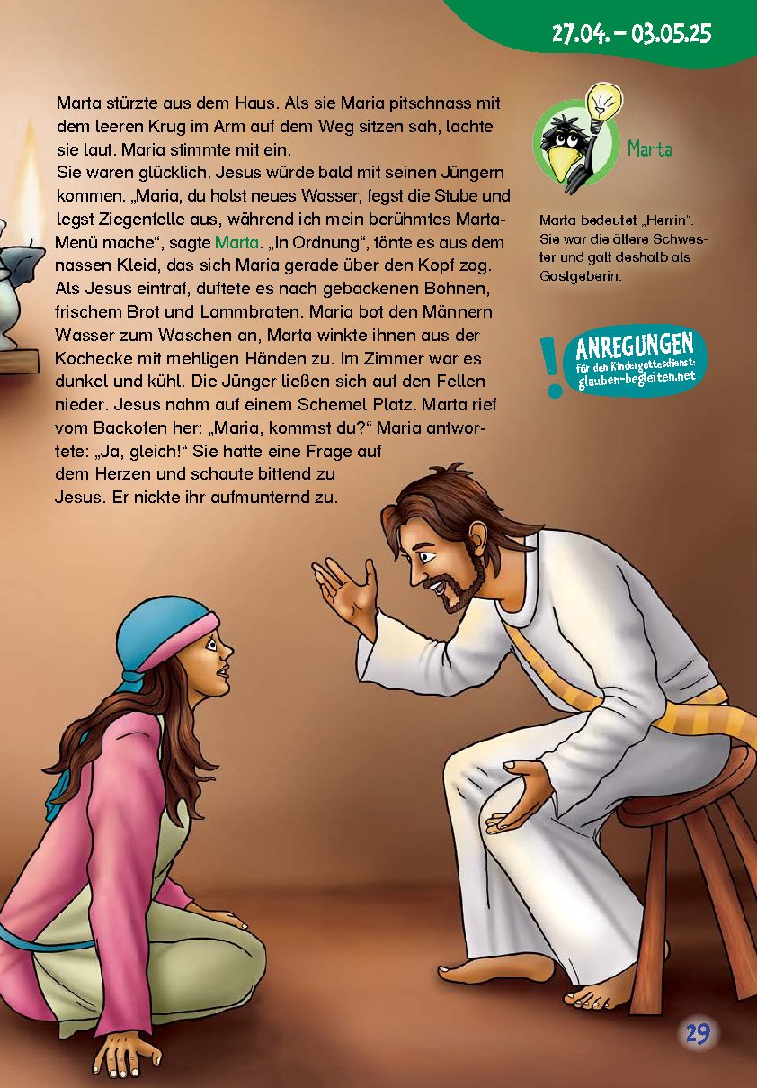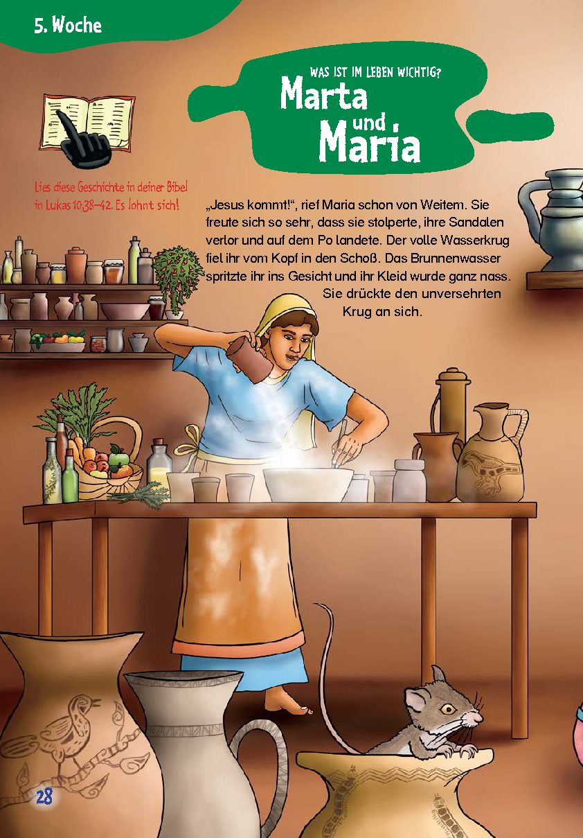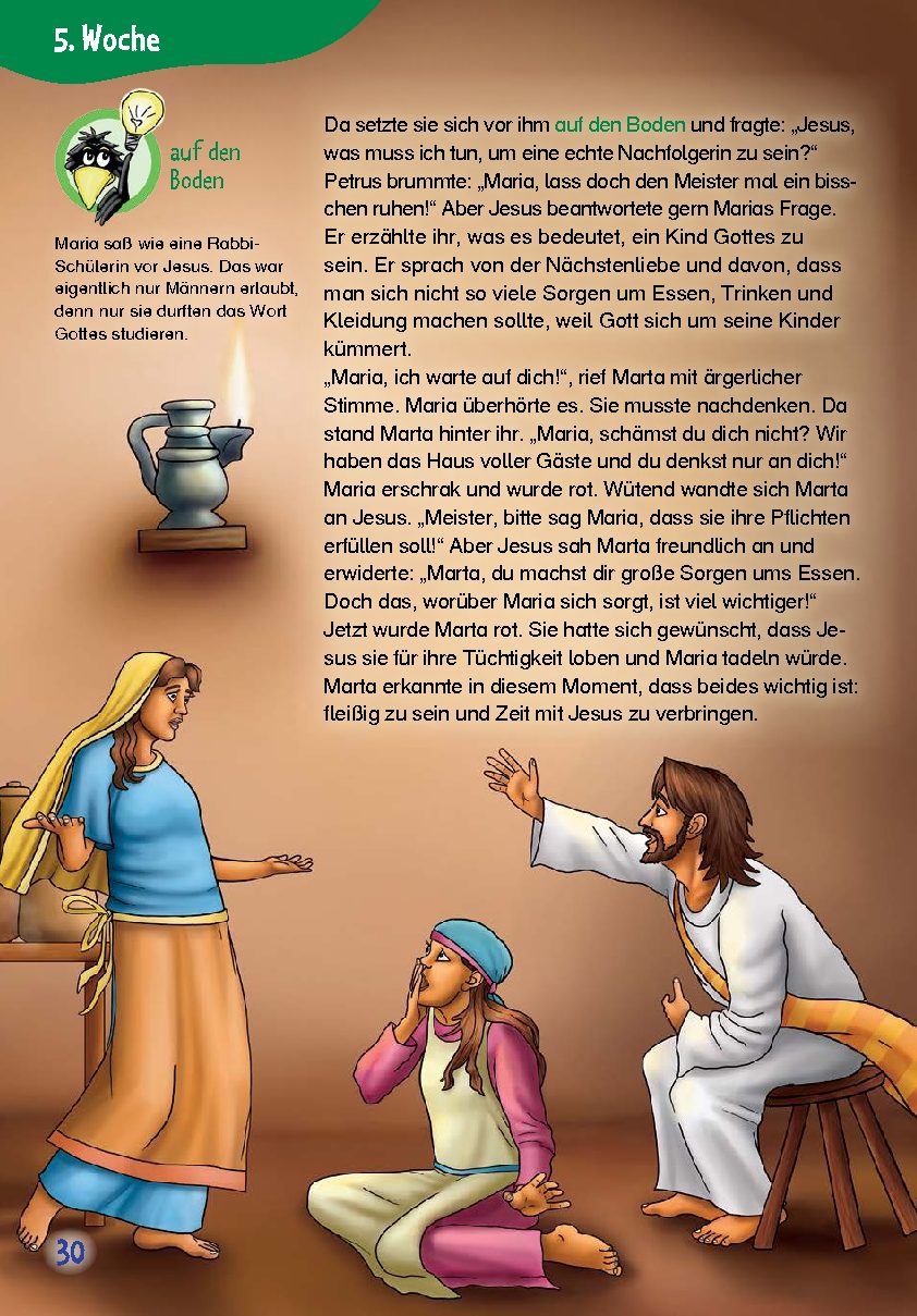 - Sonntag: Lesen der Bibelgeschichte, wie sie die Schatzkiste erzählt.